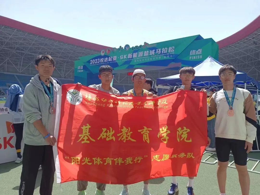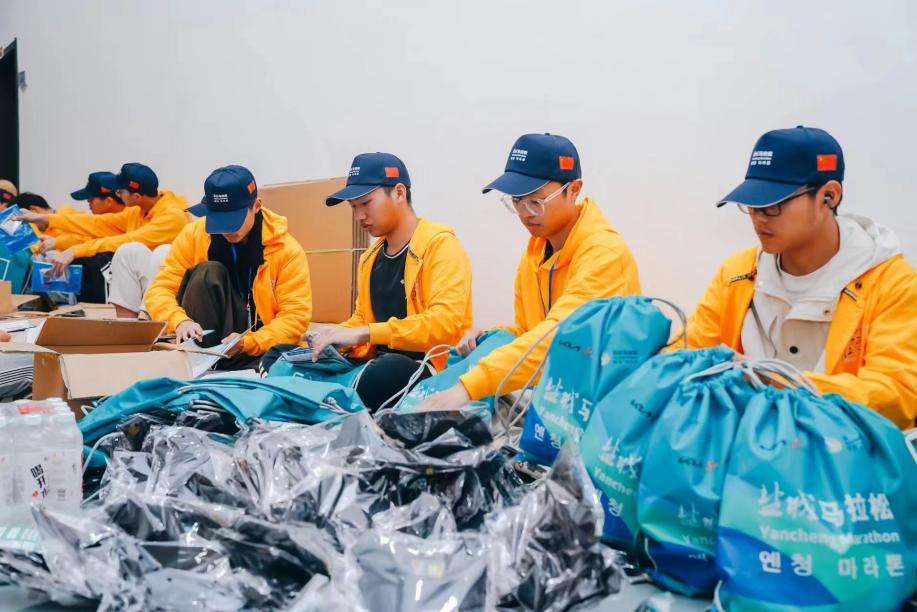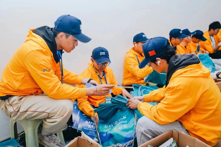 基础教育学院派出八十名同学参加马拉松比赛赛前志愿者活动,完成赛事物资装备与分配等工作。