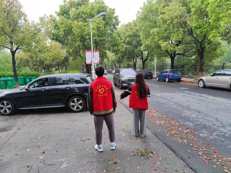 我院十余名志愿者引导车辆在校园内停放,为参赛选手提供后勤保障服务工作。