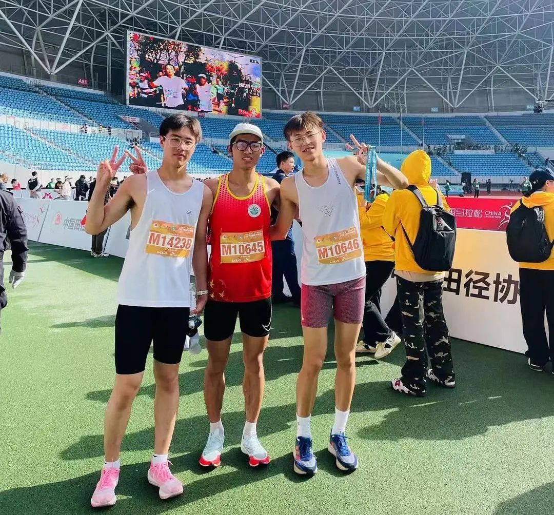经过激烈角逐,运动员沈志、赵乐、严一力三位同学在迷你马拉松比赛中