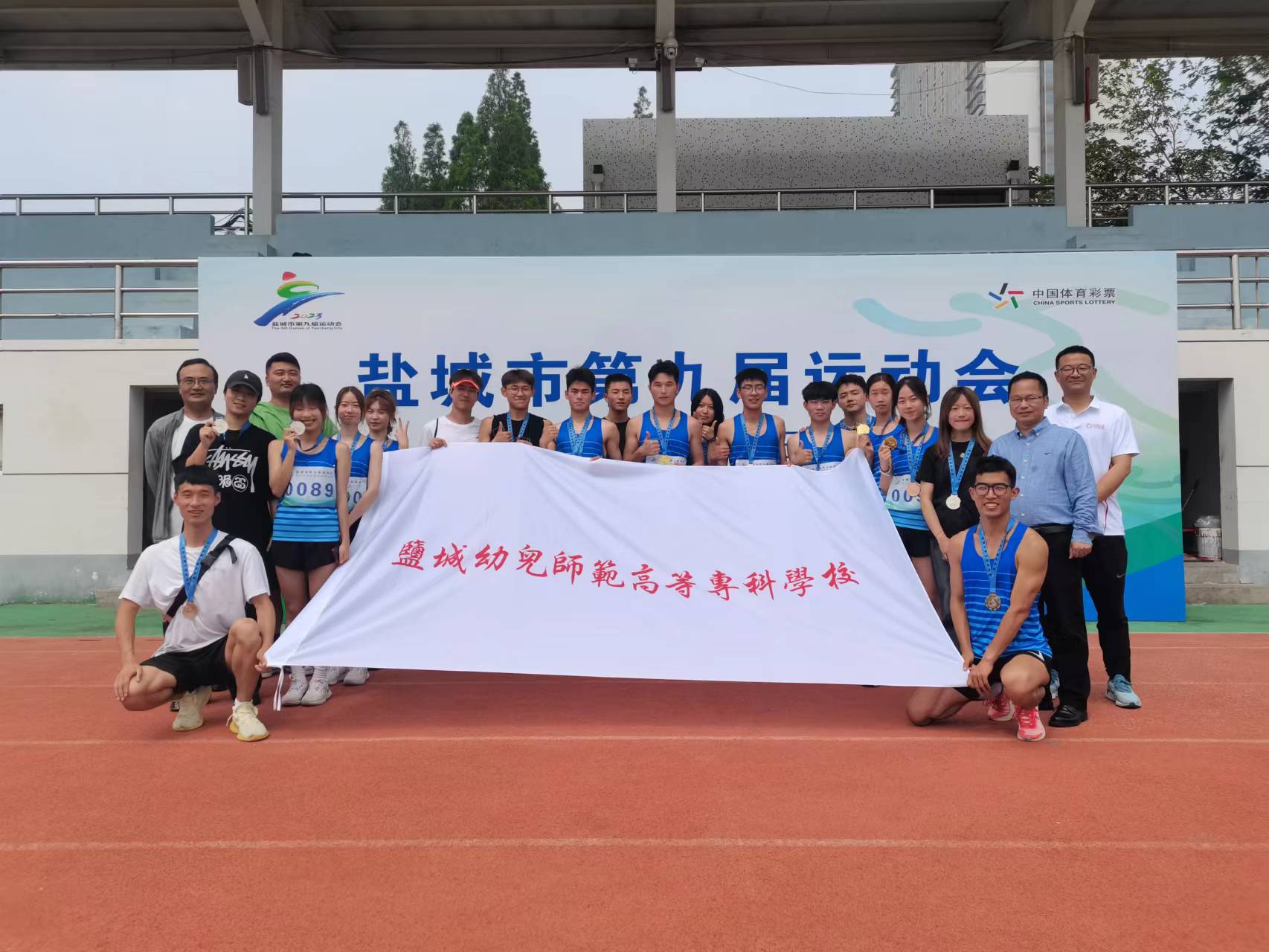 6月21日,随着田径赛事的鸣金收枪,盐城市第九届运动会青少部高校组各项赛事落下帷幕。我校共参加5个项目的比赛,运动员在本次赛事中顽强拼搏,奋力争先,取得优异成绩,其中田径项目获得9金9银6铜共24枚奖牌,奖牌数第二,男子团体总分第一,女子团体总分第二,男女团体总分第二,仅次于东道主盐城师范学院;其他项目共获得1金6银6铜共13枚奖牌,其中跆拳道太极八章(二级)冠军,足球亚军,篮球季军。