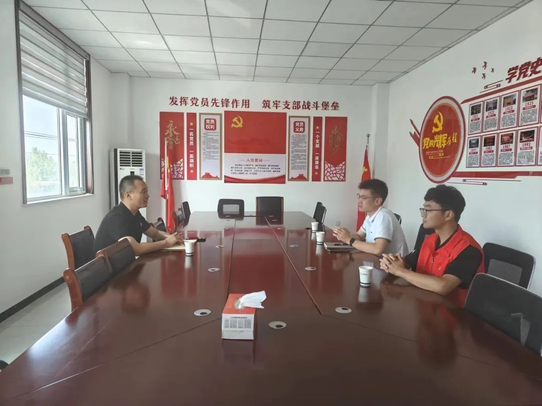 基础教育学院唐云豪老师带领志愿者们到汪沟镇刘家庄村探讨学生志愿者服务工作的相关事宜。刘家庄第一书记王利平书记、村支部书记刘现峰参加了座谈会。唐云豪老师介绍了本次暑期社会实践服务团的活动开展内容与长远性合作的思路,希望通过红色体育服务进乡村,来拓宽乡村振兴之路。刘家庄村王利平书记介绍了本村的特色以及发展前景,通过建设水库垂钓区及乡村体育节等“六大板块”,打造红色文旅特色产业。双方就文化方面发展事宜达成一致,接下来通过长期合作,主要围绕共同培养体育人才、开展红色体育赛事、传承优秀传统体育文化等项目开展系列活动。