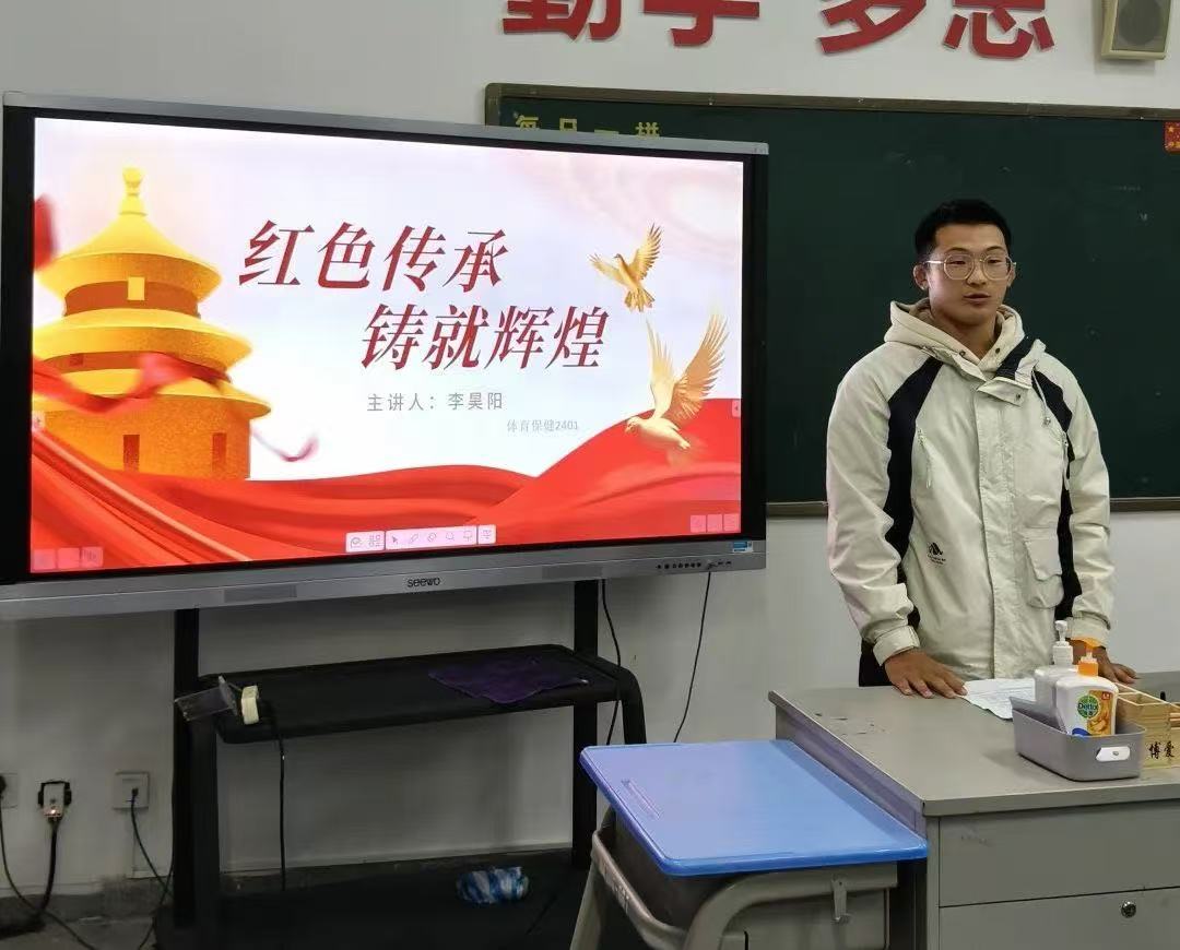 体育保健2401的李昊阳同学主题是“红色传承铸就辉煌”。红色传承,是对历史的敬畏与铭记。那些波澜壮阔的红色故事,承载着先辈们的理想与信念、奋斗与牺牲。他说我们应该始终牢记“红色传承,铸就辉煌”的使命,将红色基因融入血液,在新的征程上书写更加壮丽的篇章,为实现中华民族伟大复兴的中国梦而不懈奋斗。
