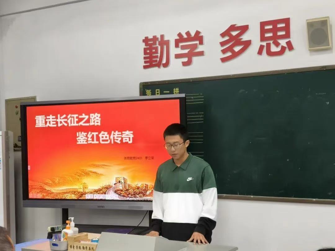 体育教育2401的季立果同学的演讲围绕“重走长征之路,鉴红色传奇”,他自信从容,声音洪亮,通过红色故事缅怀历史,感受先辈以热血和生命铸就红色的征程。铭记长征精神,弘扬革命文化,传承红色基因。