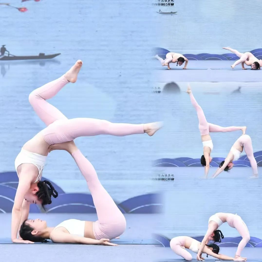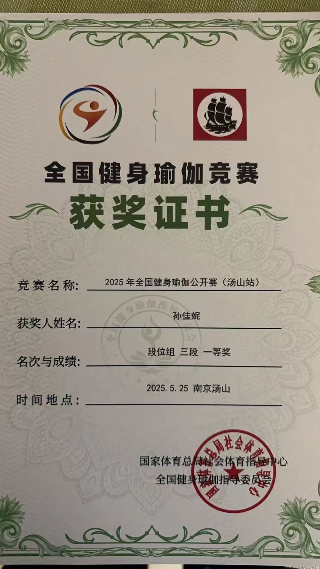 5月24日-25日,2025年全国健身瑜伽公开赛砀山站在南京汤山矿坑公园隆重开幕,此次比赛有来自全国29个城市和普通高校的52支代表队及480名个人选手参赛,创历史新高。我院阳光瑜伽社团代表队参加了本次比赛,展示了平时训练成果并获得优异成绩,其中段位赛孙佳妮同学获得全国一等奖,戈成苗获得二等奖,孙欣、周夏添、舒梓宸、曾超洋、李翔均获得三等奖,同时斩获全国普通高校集体组第三名,混双组第四(周夏添 王恬)、混双组第八(舒梓宸 孙佳妮)。本次参赛队员在平时学院“班班特色”的瑜伽班(体教2402)和阳光体育瑜伽社团成员中选拔。