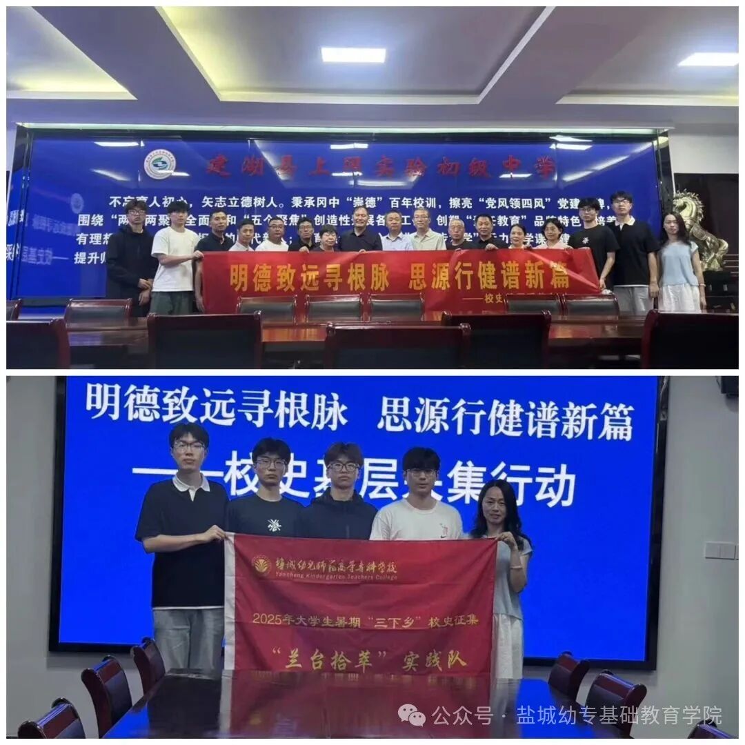 为积极响应“知史研史,映照初心,文脉根脉,凝聚人心”的号召。2025年7月19日由基础教育学院暑期“三下乡”校史征集“兰台拾萃”实践队抵达建湖县上冈实验初级中学进行一系列的校史基层收集行动。